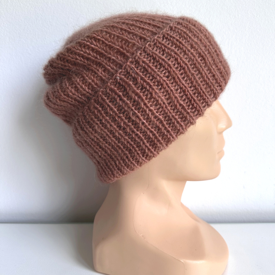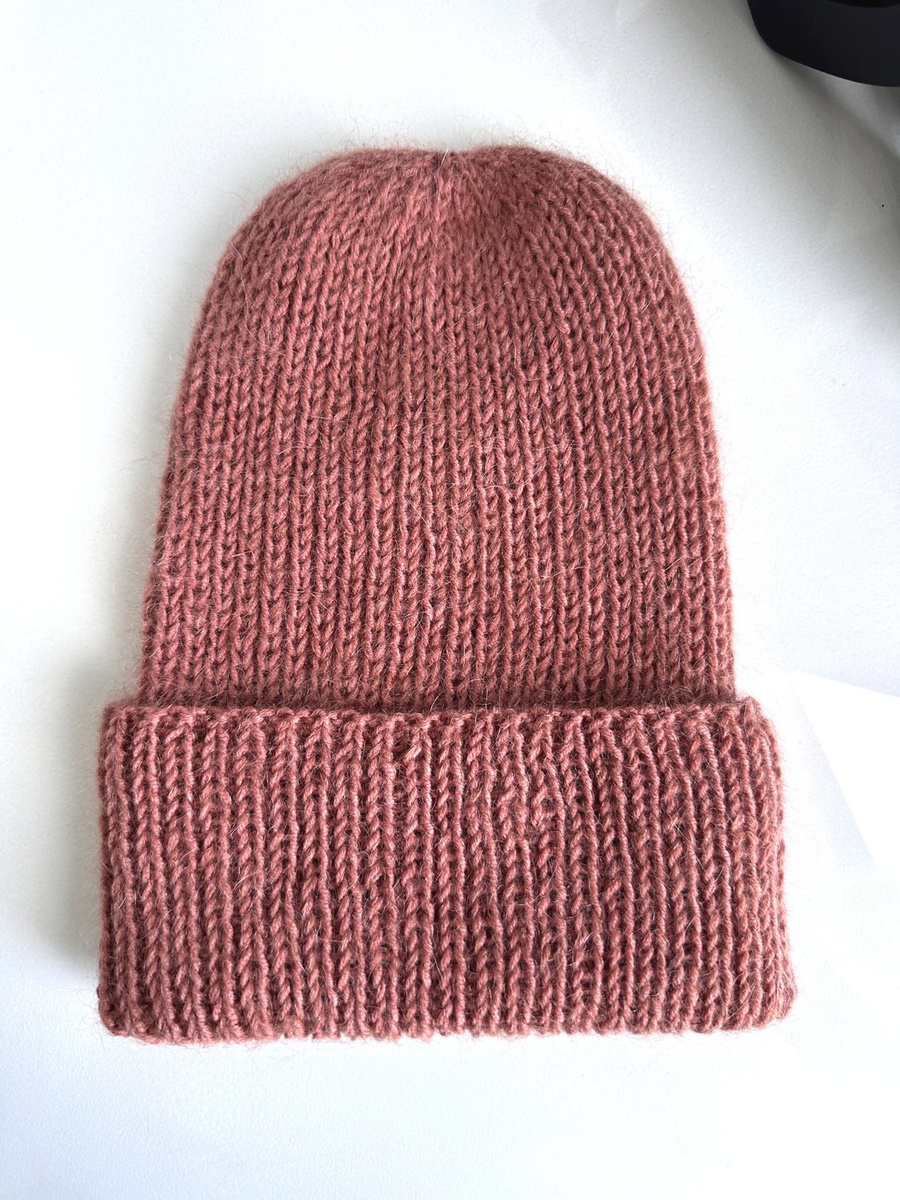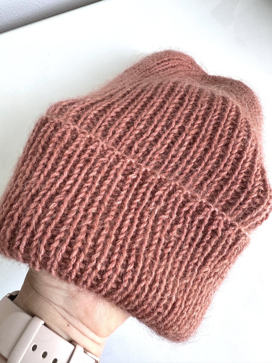 Ręcznie robiona czapka beanie AUREA 100% Baby Merino plus moher i jedwab 48/33 Blush