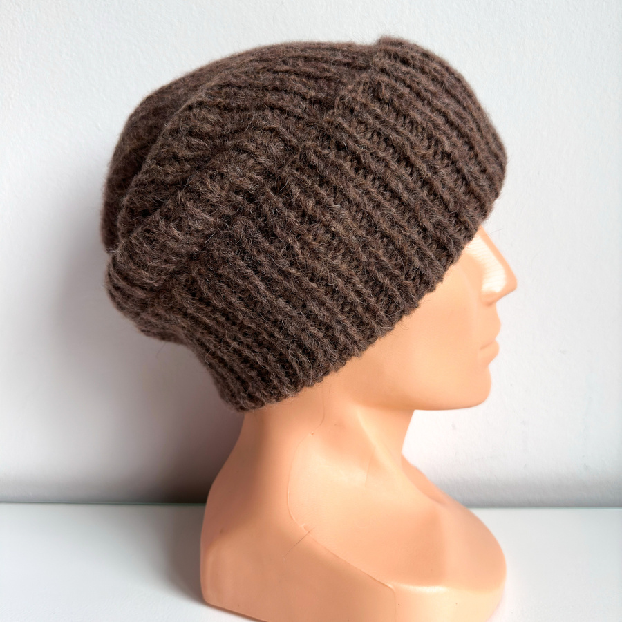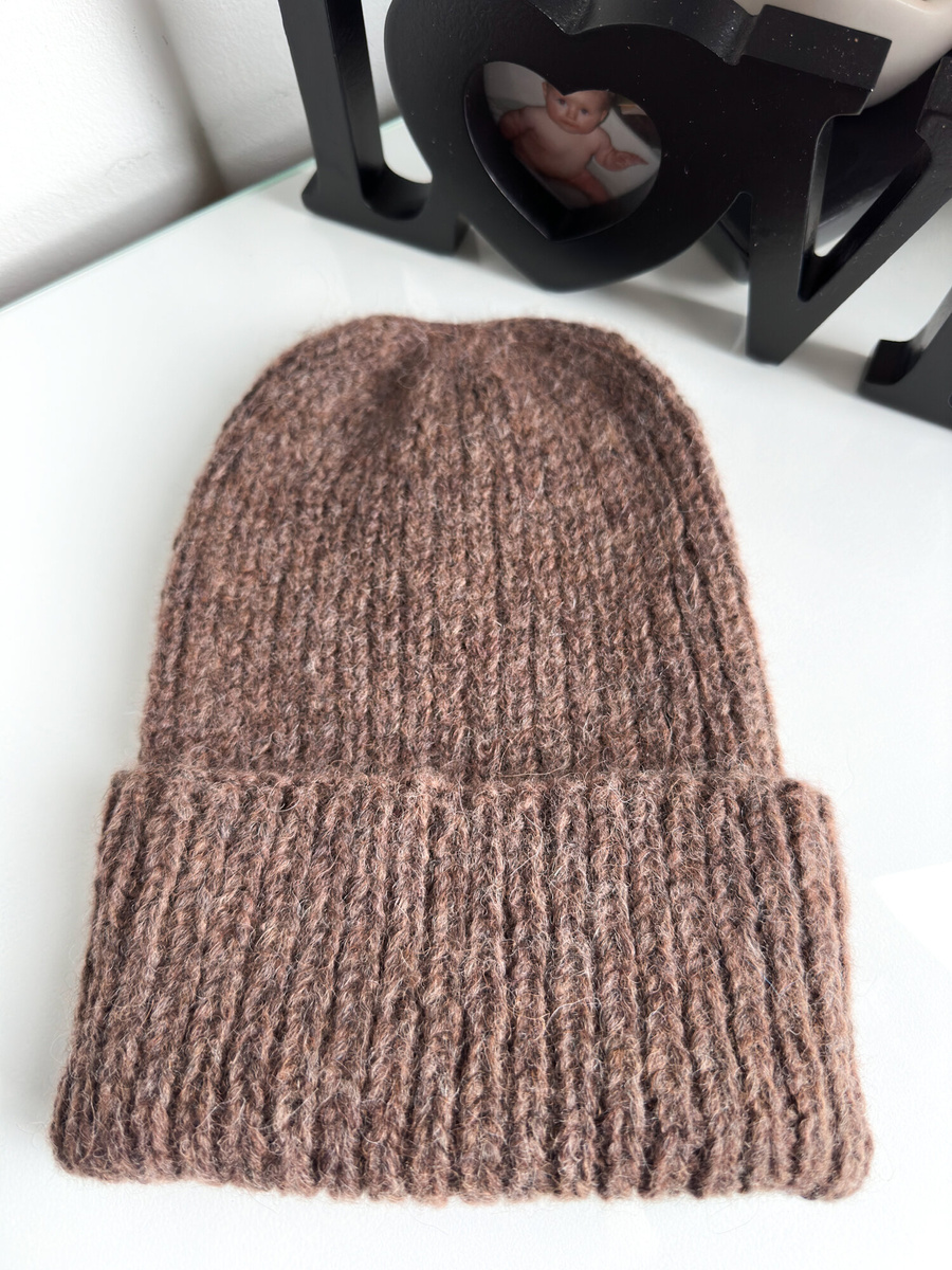 Ciepła czapka ręcznie robiona wywijana CHMURKA Alpaka 05 Brąz