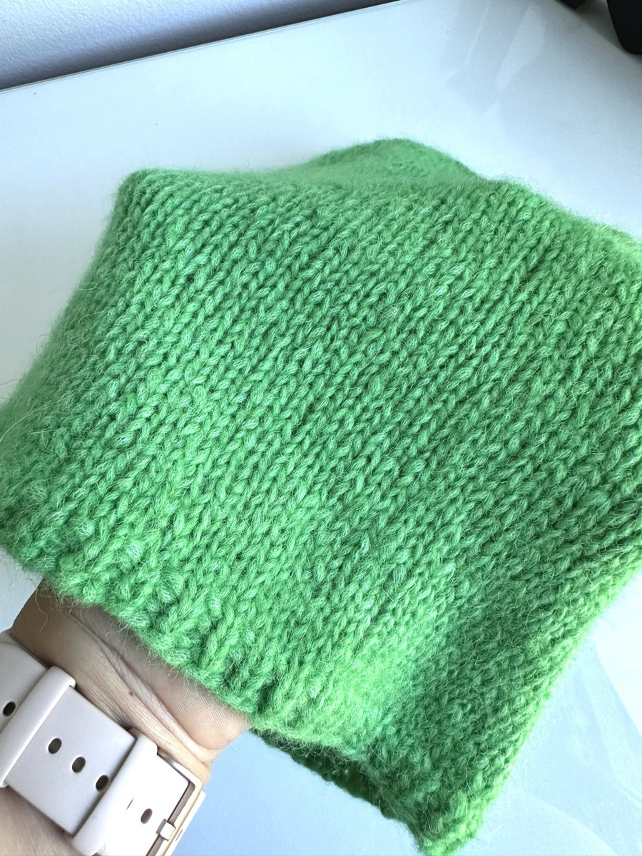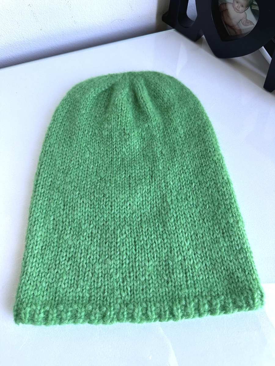 Ciepła czapka ręcznie robiona CHMURKA Alpaka 43 Papuzia Zieleń