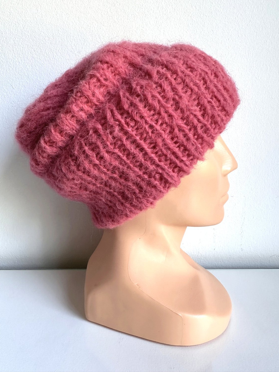 Ręcznie robiona czapka damska WATA CUKROWA Alpaka z Merynosem 13 Różowy