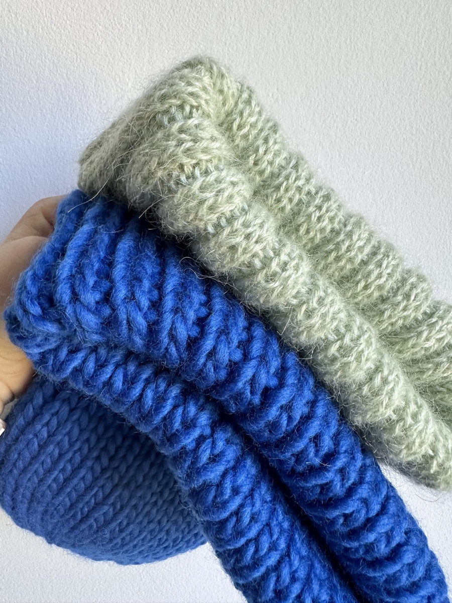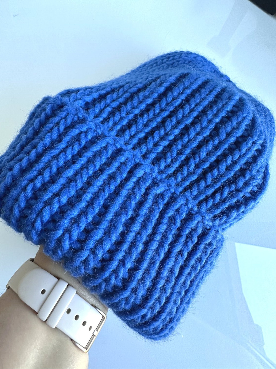 Duża czapka ręcznie robiona na drutach. Będzie idealna jako czapka zimowa. Choć jest gruba i solidna, to jednocześnie delikatna i miła. A może szukasz subtelniejszej, cieńszej wersji? Wówczas zobacz moje czapki 100% merino.