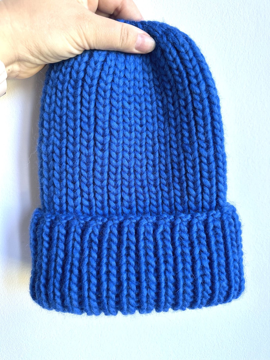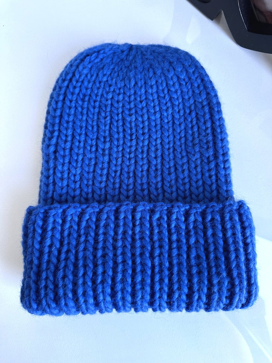 Ręcznie robiona czapka wywijana JANKA 100% Wełna owcza 104 Kobalt