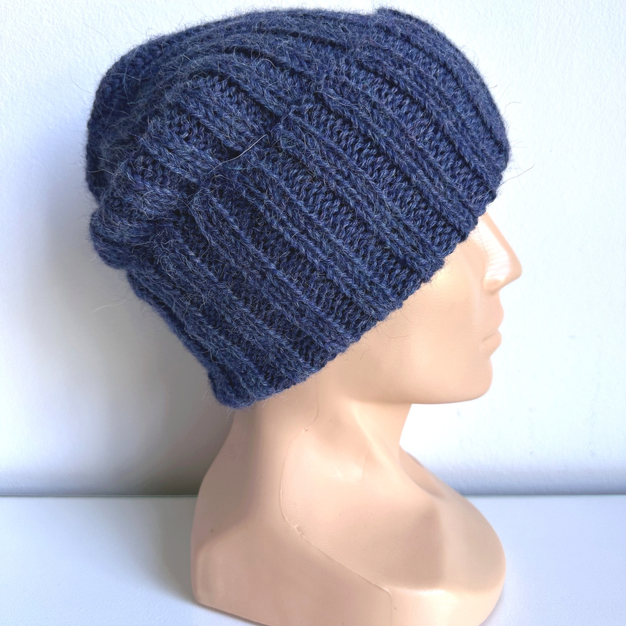 Ręcznie robiona Czapka wywijana LAURIN 100% Alpaka 6360 Nocne Niebo