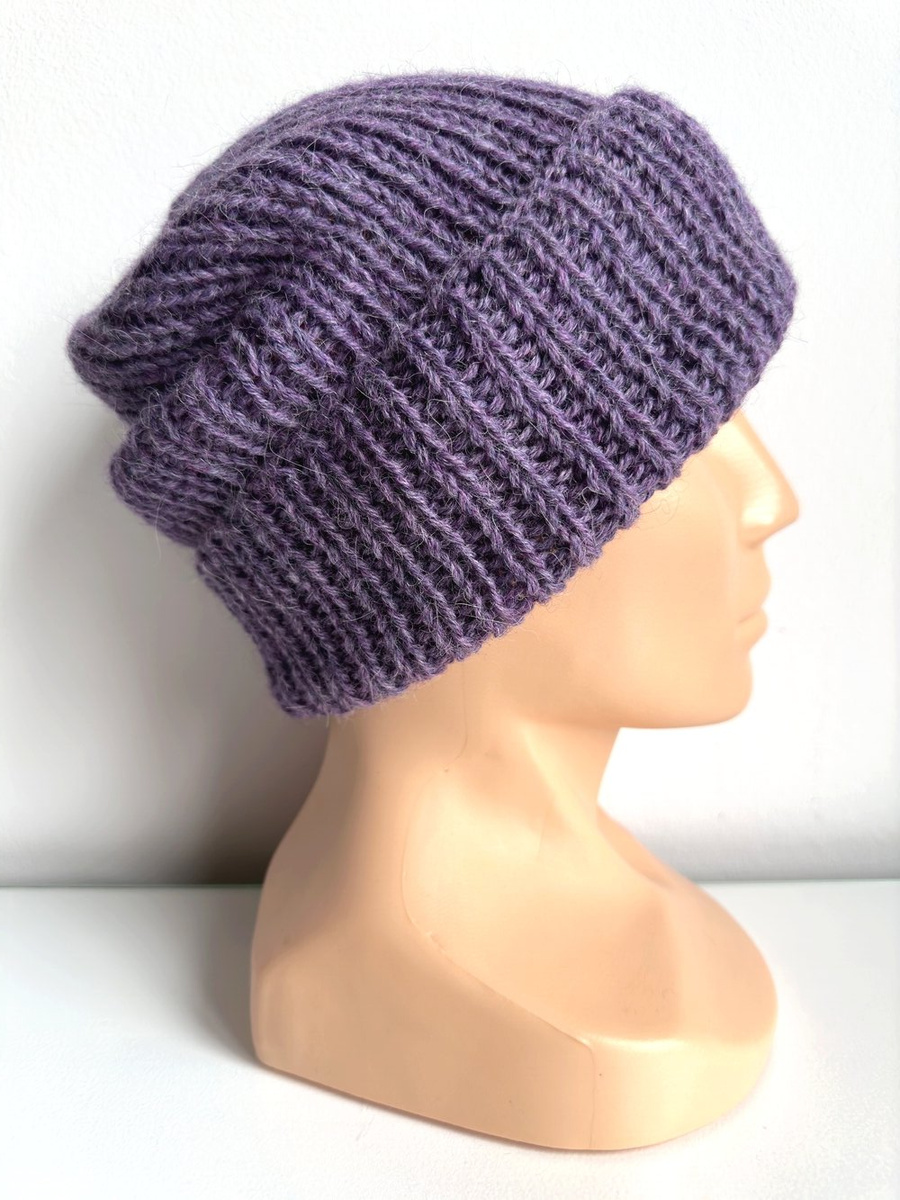 Czapka wywijana zrobiona ręcznie na drutach KIARA 100% Alpaka 4434 Ametyst