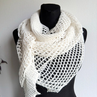 Biała chusta ślubna lub na co dzień, ręcznie wykonana chusta 100% alpaka