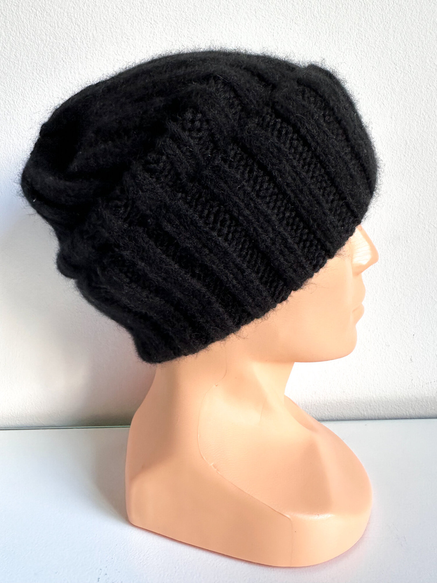 Wywijana czapka kaszmirowa 100% kaszmir 516 Nero