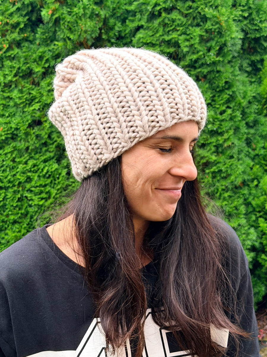 Duża, ciepła czapka ręcznie robiona na drutach. Idealna jako czapka zimowa. Gruba, solidna, ale delikatna i miła. Jeśli szukasz subtelniejszej wersji, postaw na czapki 100% merino.