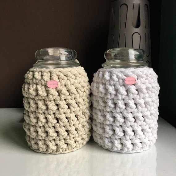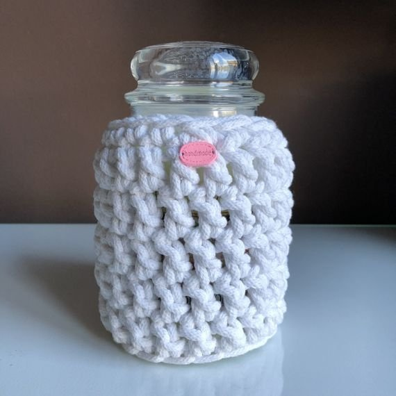 Osłonka na świecę zapachową ze sznurka bawełnianego wykonana na szydełku. Poza tym, że wygląda pięknie i stylowo, ułatwia rozgrzanie świecy do ścianek.