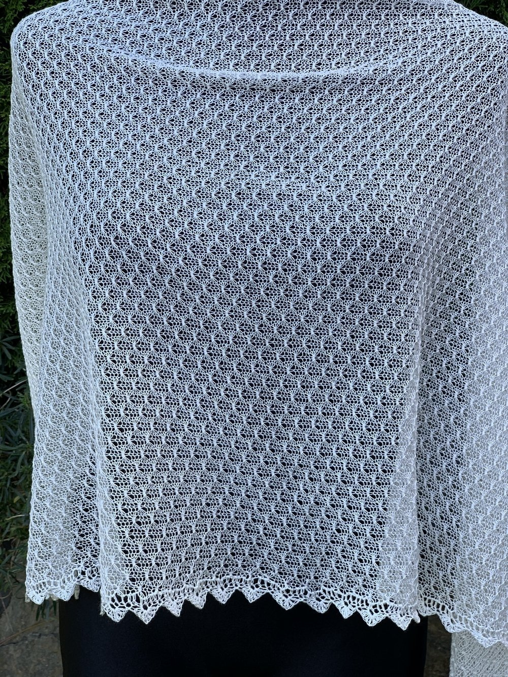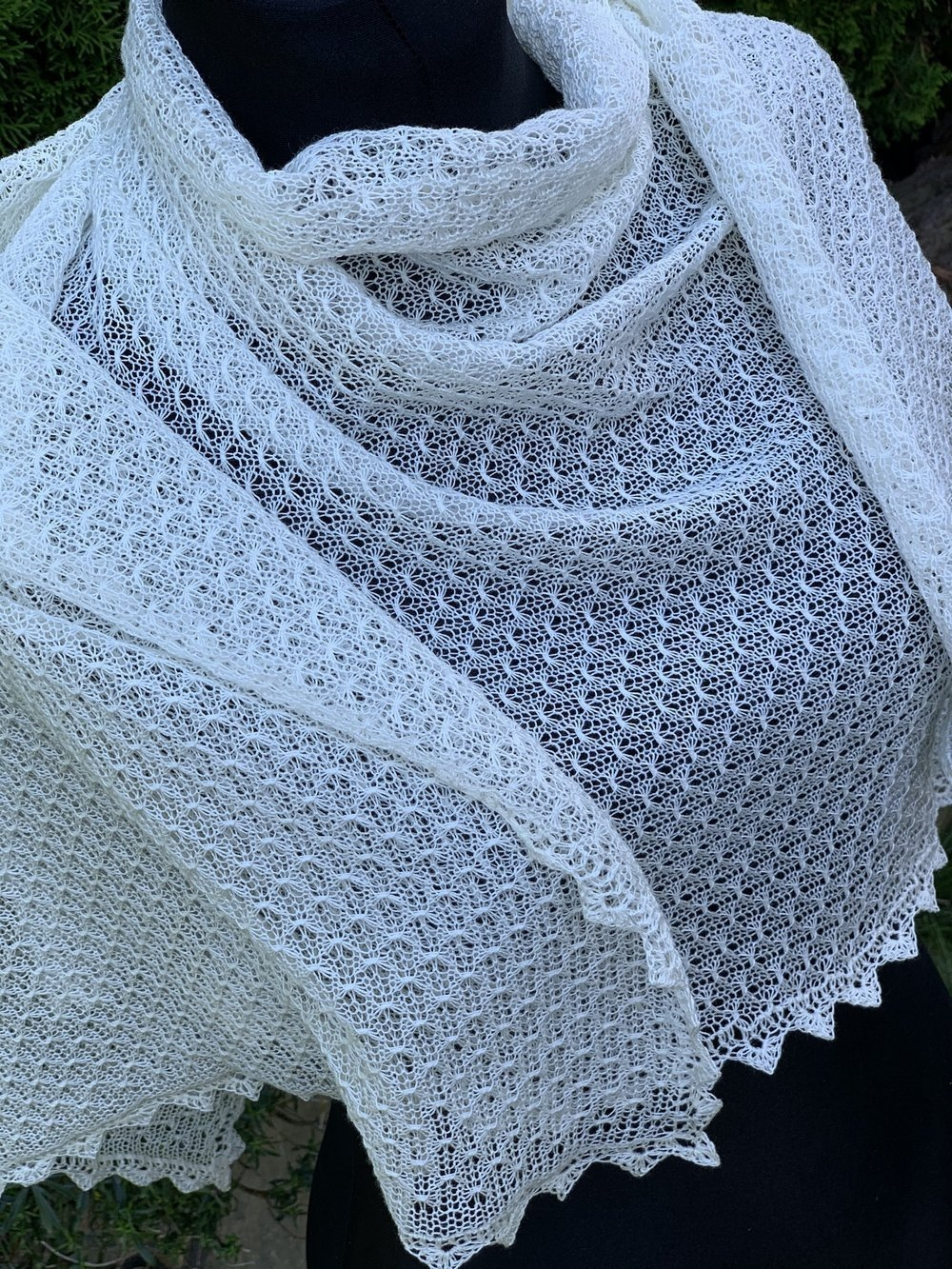 Szal wykonałam na ręcznej maszynie dziewiarskie z troską i dbałością o każdy szczegół ♥ Cały szal wykończyłam szydełkową koronką. Jest piękny i niepowtarzalny.