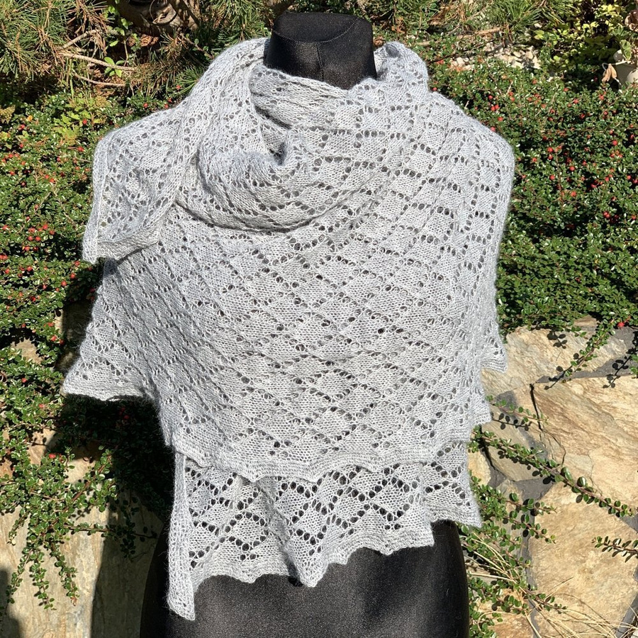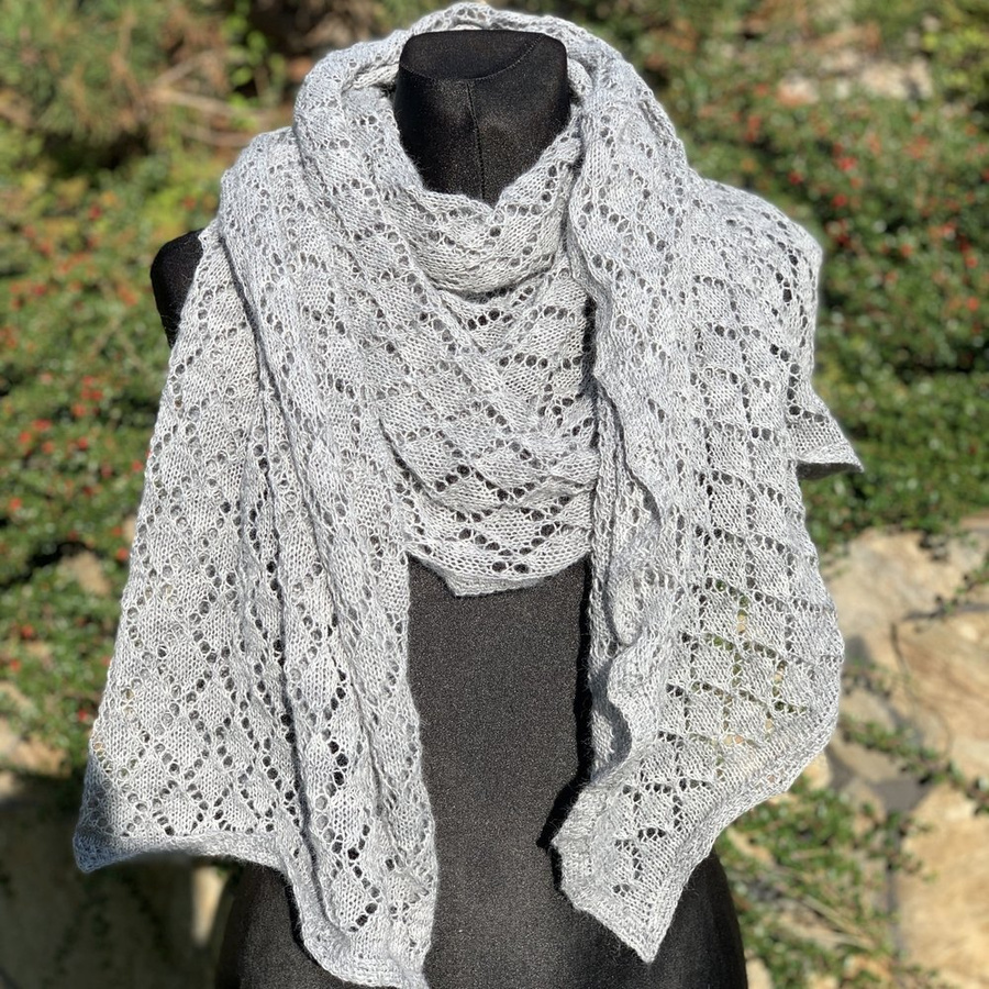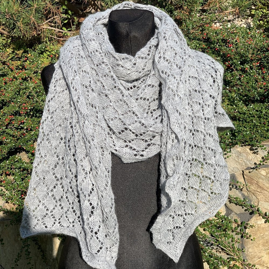 Szal wykonałam na ręcznej maszynie dziewiarskie z troską i dbałością o każdy szczegół ♥ Cały szal wykończyłam szydełkową koronką. Jest piękny i niepowtarzalny.