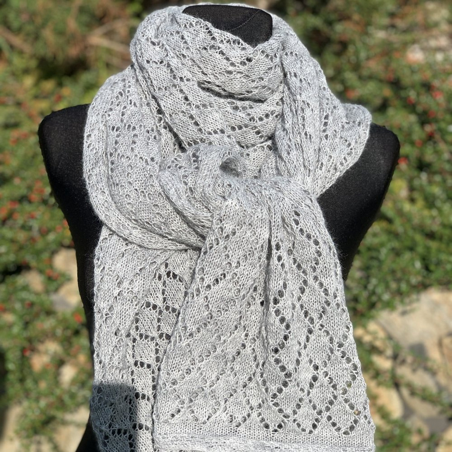 Elegancki, delikatny szal turkusowo szary melanż Nitkowe Love 45x180 cm