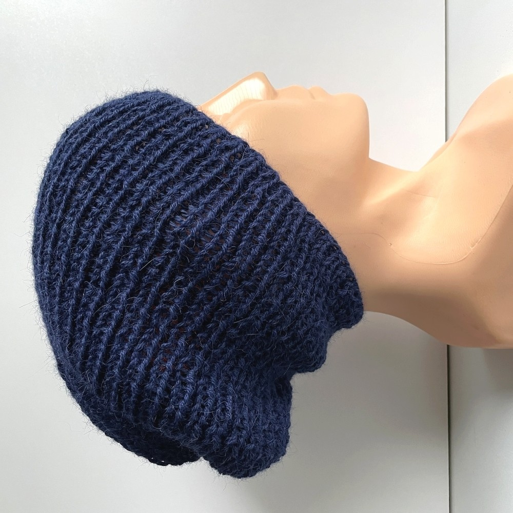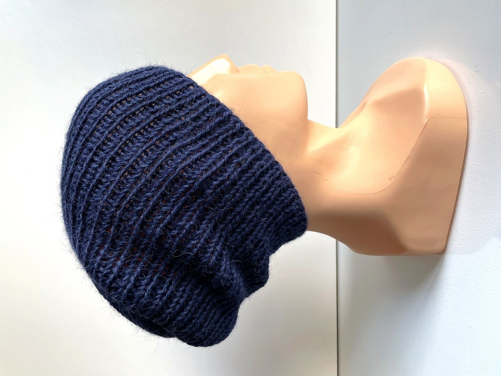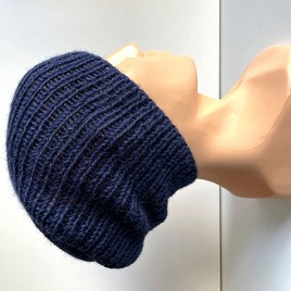 Czapka zrobiona na drutach KIARA 100% Alpaka 5575 Granatowa