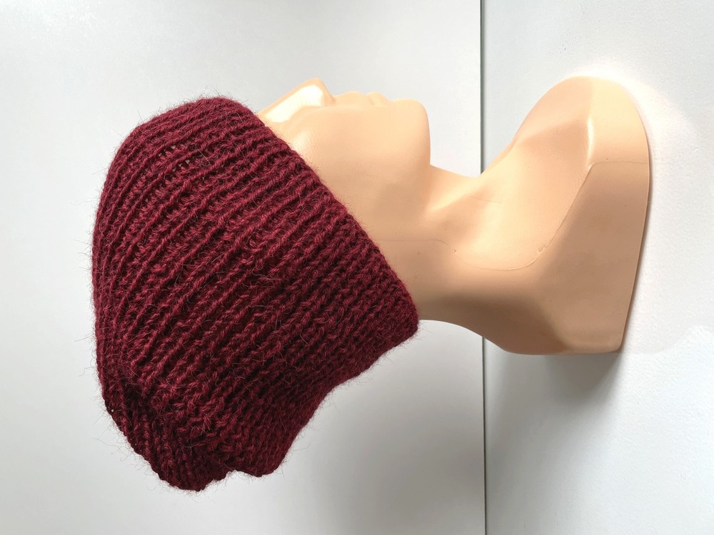 - Ręcznie robiona Czapka hand made Ściągacz 100% Alpaka 3650 Bordowy