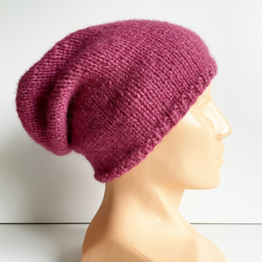 Ręcznie robiona czapka CHMURKA Alpaka 14 Wrzos