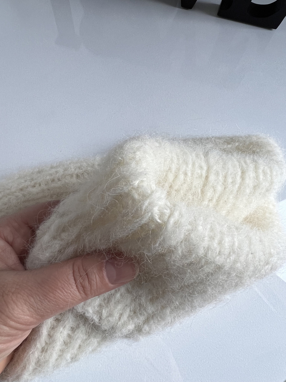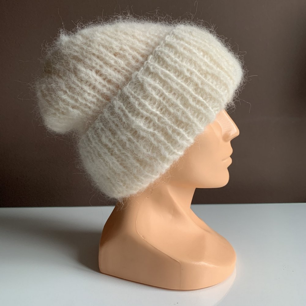 Ręcznie robiona czapka damska WATA CUKROWA Alpaka z Merynosem 01 Ecru