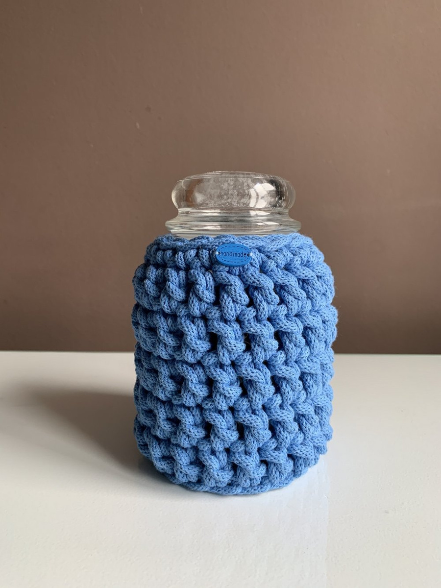 Ręcznie robiony Sweterek na świecę ze sznurka bawełnianego 480 Niebieski