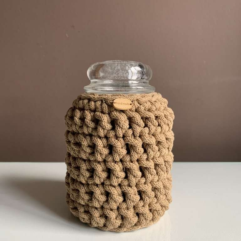 Ręcznie robiony Sweterek na świecę ze sznurka bawełnianego 705 Beżowy