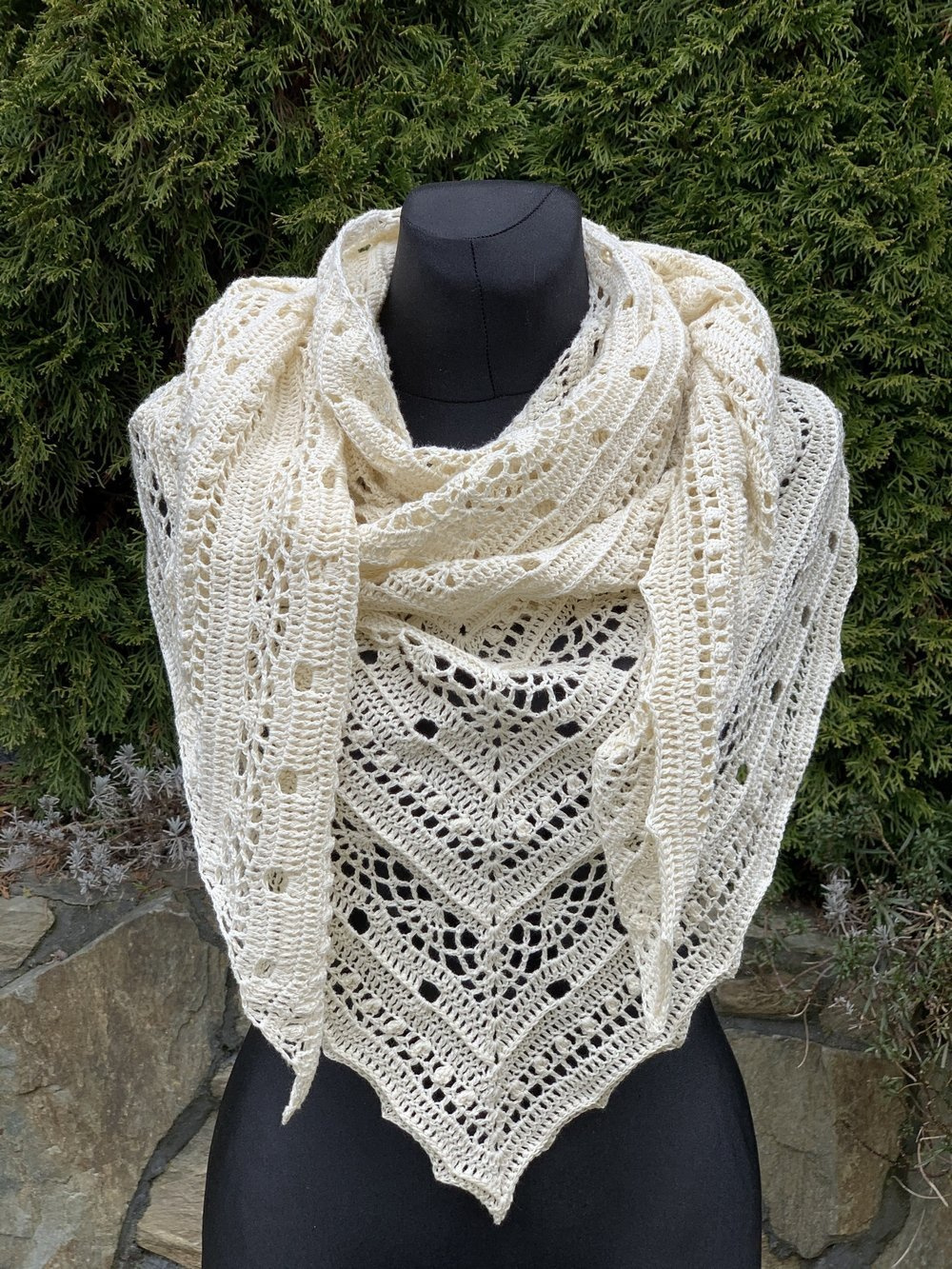 Piękna chusta, ręcznie wykonana na szydełku ze świetnej jakości włóczki. Mieszanki bawełny i akrylu.
