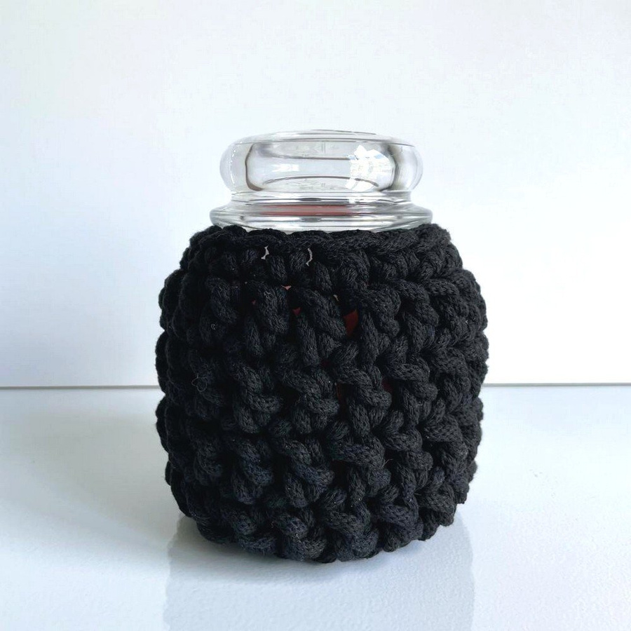 Ręcznie robiony Sweterek na świecę średnią ze sznurka bawełnianego 900 czarny