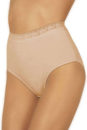 Pełne figi, wykonane z komfortowej dzianiny. Wykończone ozdobną gumokoronką z kwiatowym motywem. Spodobają się każdej Pani, dla której podstawą jest wygoda i prostota. Niewątpliwą zaletą jest też dostępność tego modelu w do rozmiaru XXL.