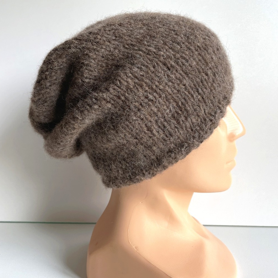 Ciepła czapka ręcznie robiona CHMURKA Alpaka 05 Brąz