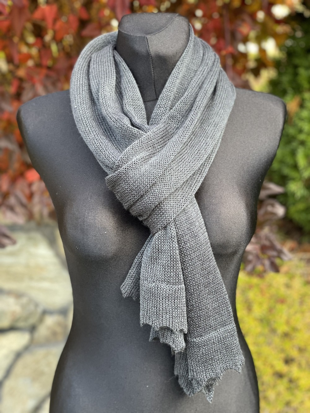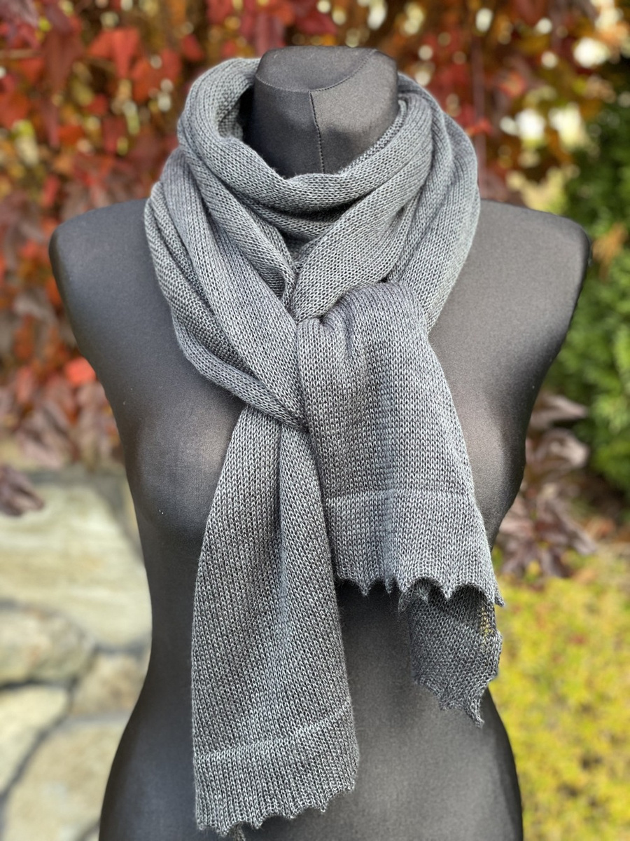 - Delikatny i zwiewny szal z merynosem Grafitt 40x185 cm