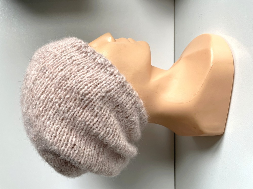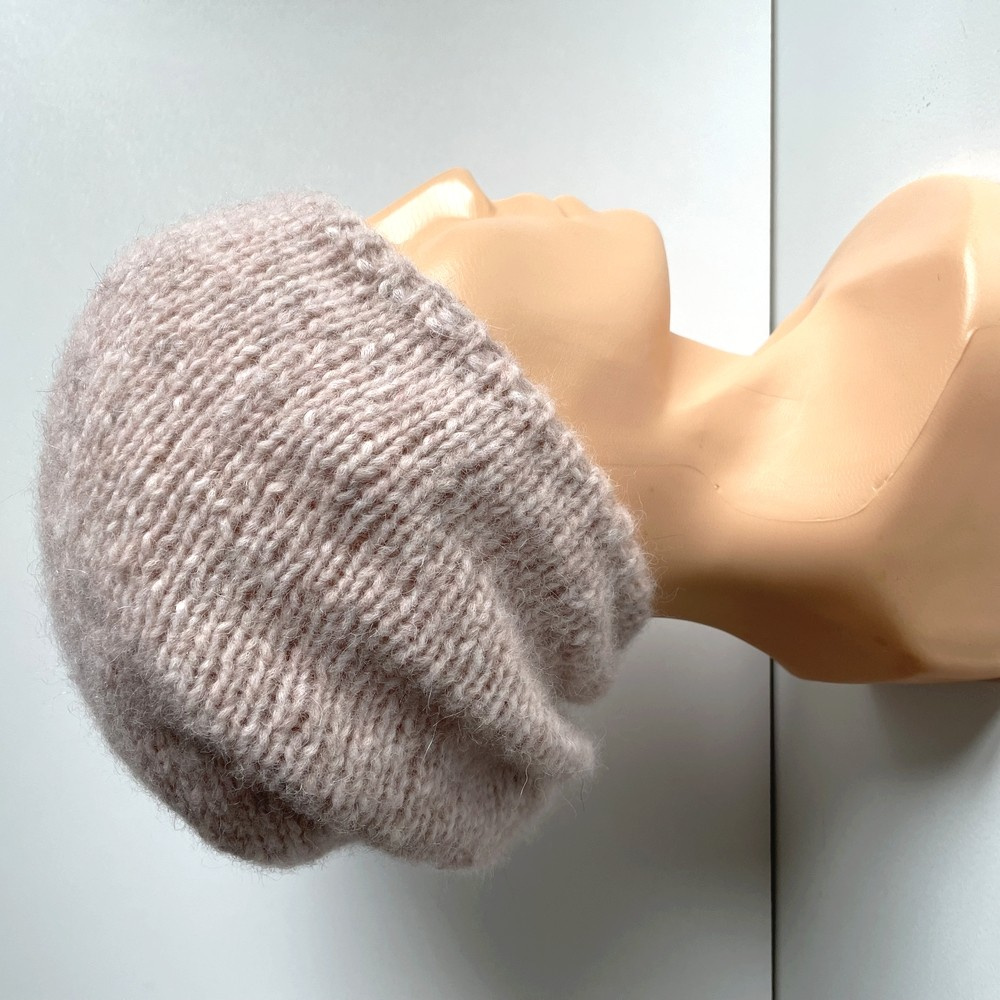 - Czapka robiona na drutach CHMURKA Alpaka 33 Różowy Piasek