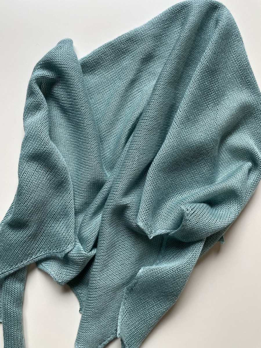 Piękna i delikatna chusta z cudownej włóczki (50% jedwab i 50% merynos). Wykonana gładkim ściegiem.