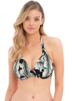 Bamboo Grove features a large-scale botanical print of palm, banana and monstera leaves in a greyscale, illustrated design. Resting upon a black ground, we just love how the sage green and mango accent tones have been weaved into the design through the leaves and abstract cantaloupe slices. Choose your favourite styles from a line-up of Fantasie favourites, and complete the look with a Kaftan.