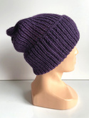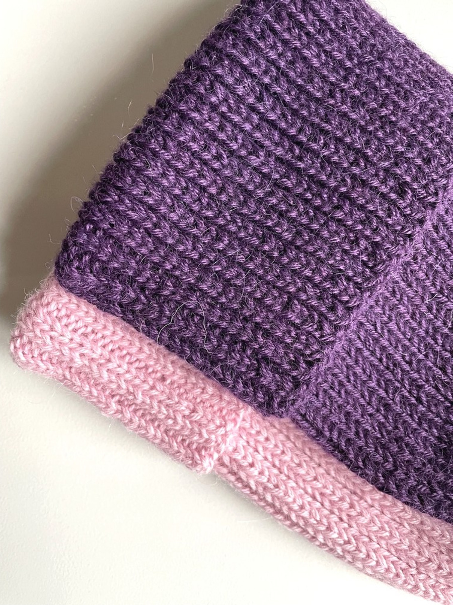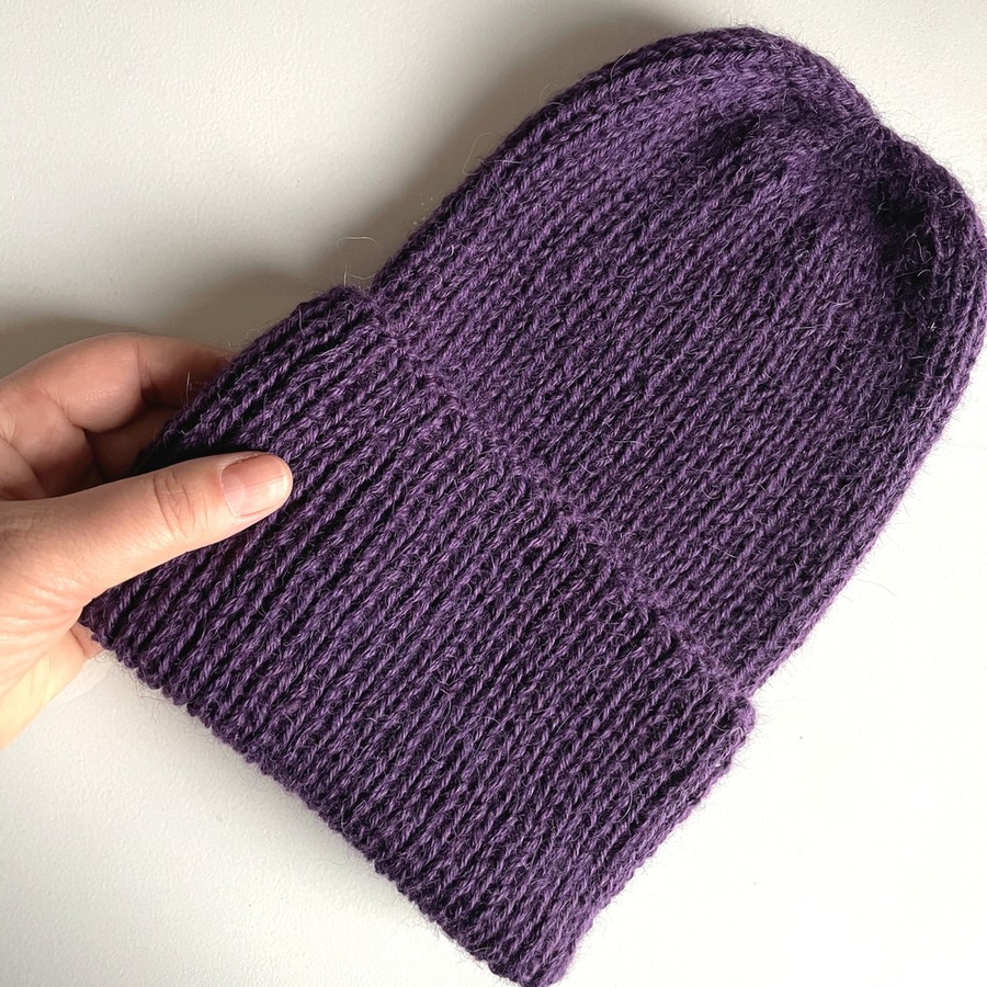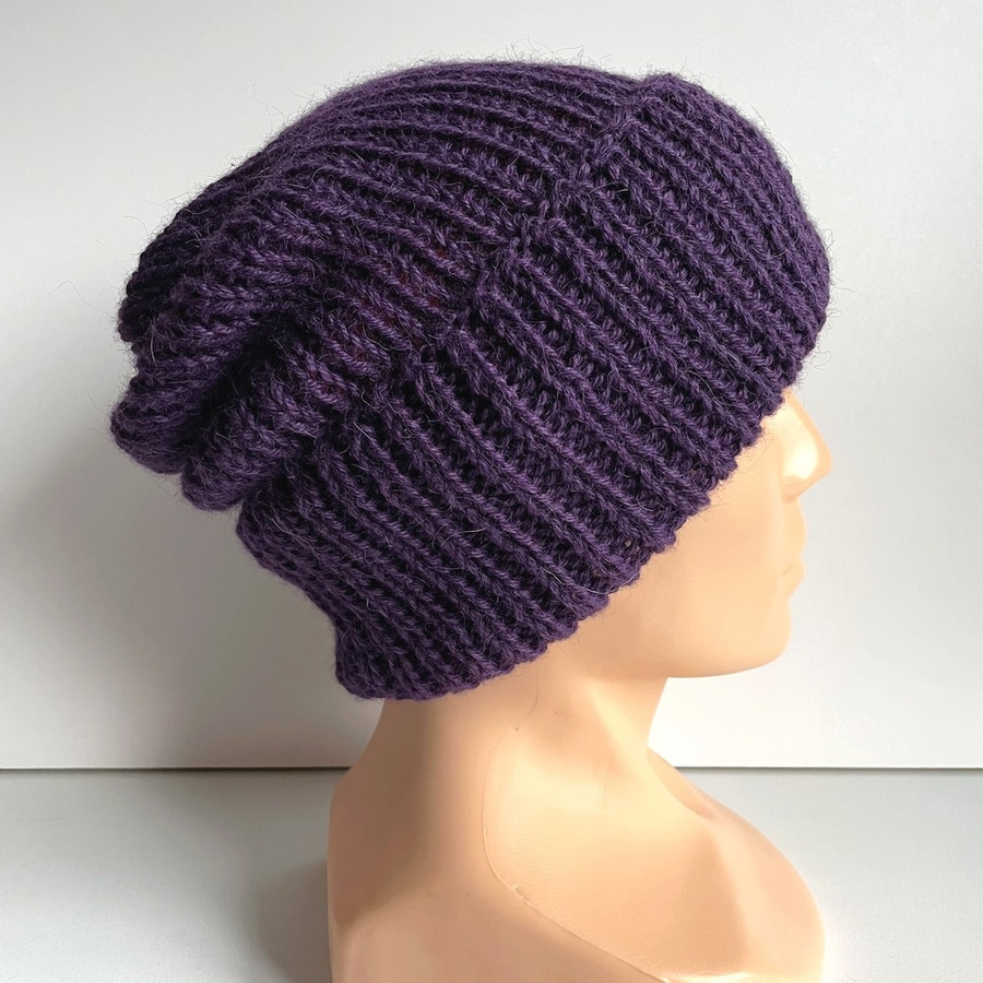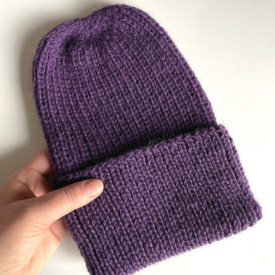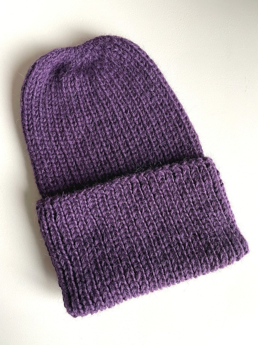 Czapka wywijana wykonana ręcznie na drutach KIARA 100% Alpaka 4400 Ciemno Fioletowy