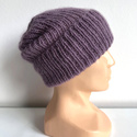 Ręcznie robiona czapka beanie AUREA 100% Baby Merino plus moher i jedwab 40/05 Ametyst