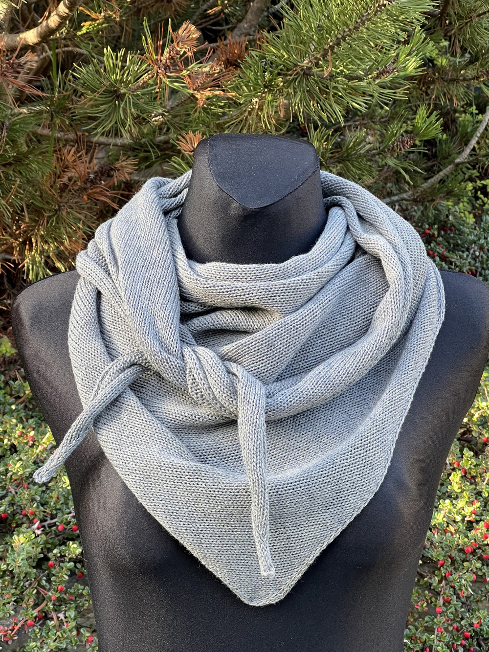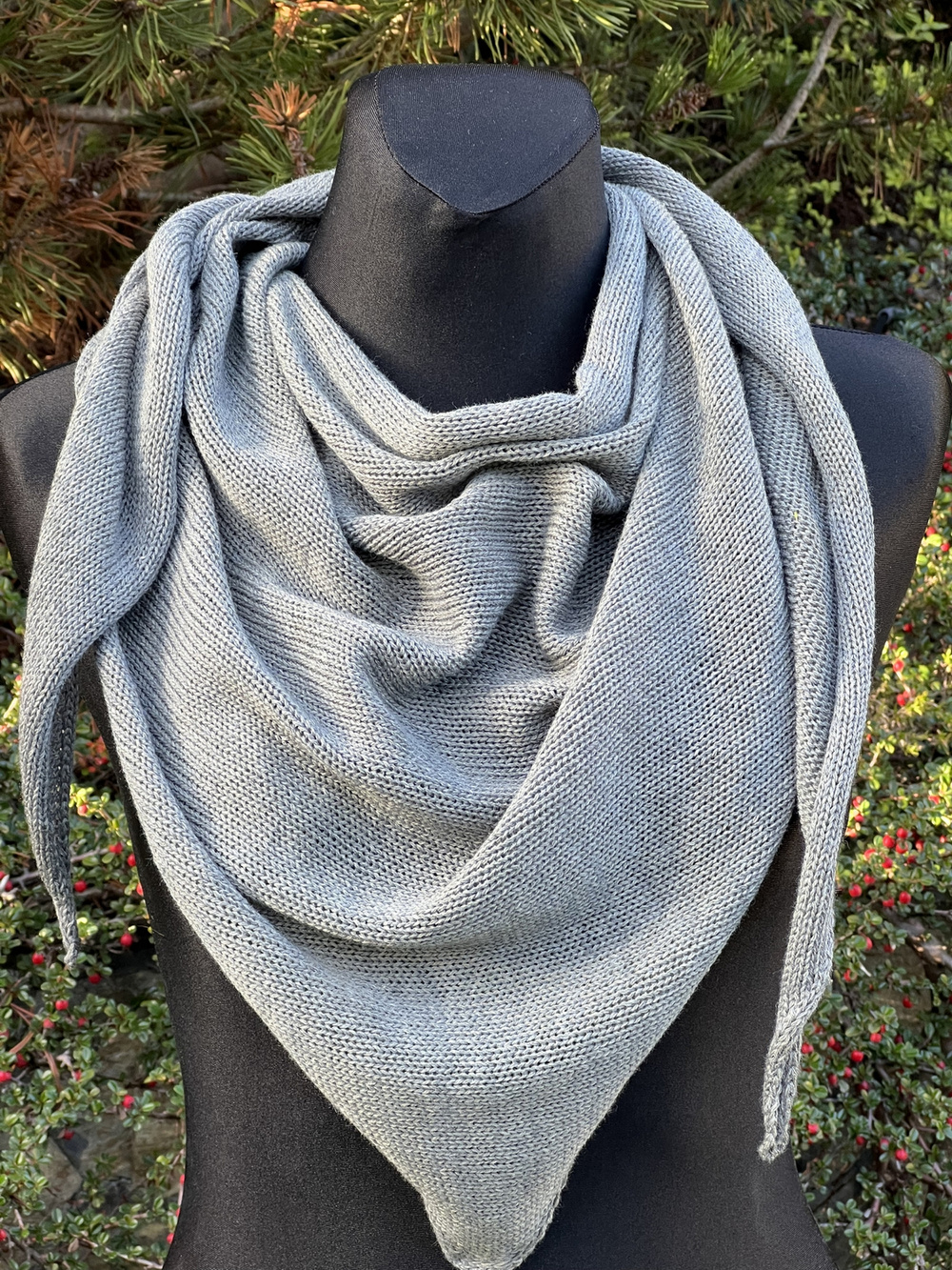 Prosta chusta z wysokiej jakości włóczki, wykonana gładkim ściegiem.