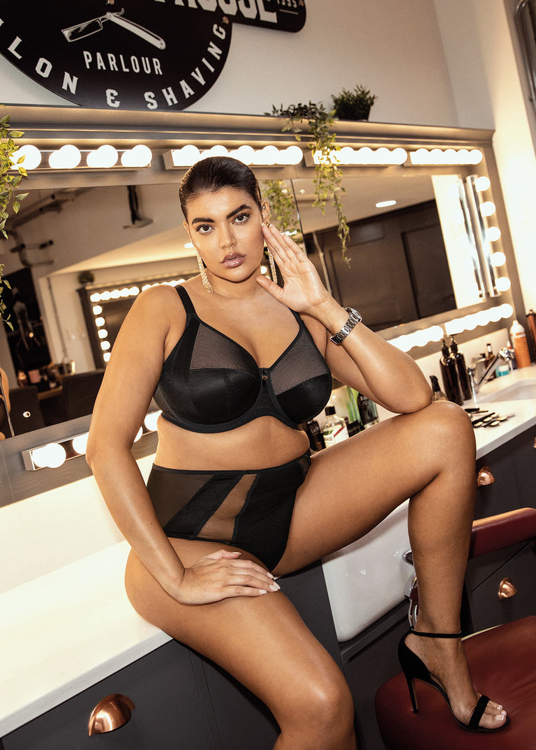 - Fine stretch fishnet mesh top cup with powernet liner to give a beautifully rounded shape