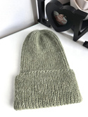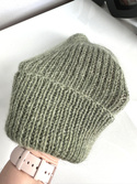 Ręcznie robiona czapka beanie AUREA 100% Baby Merino plus moher i jedwab 38/18 Oliwka