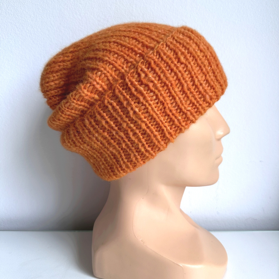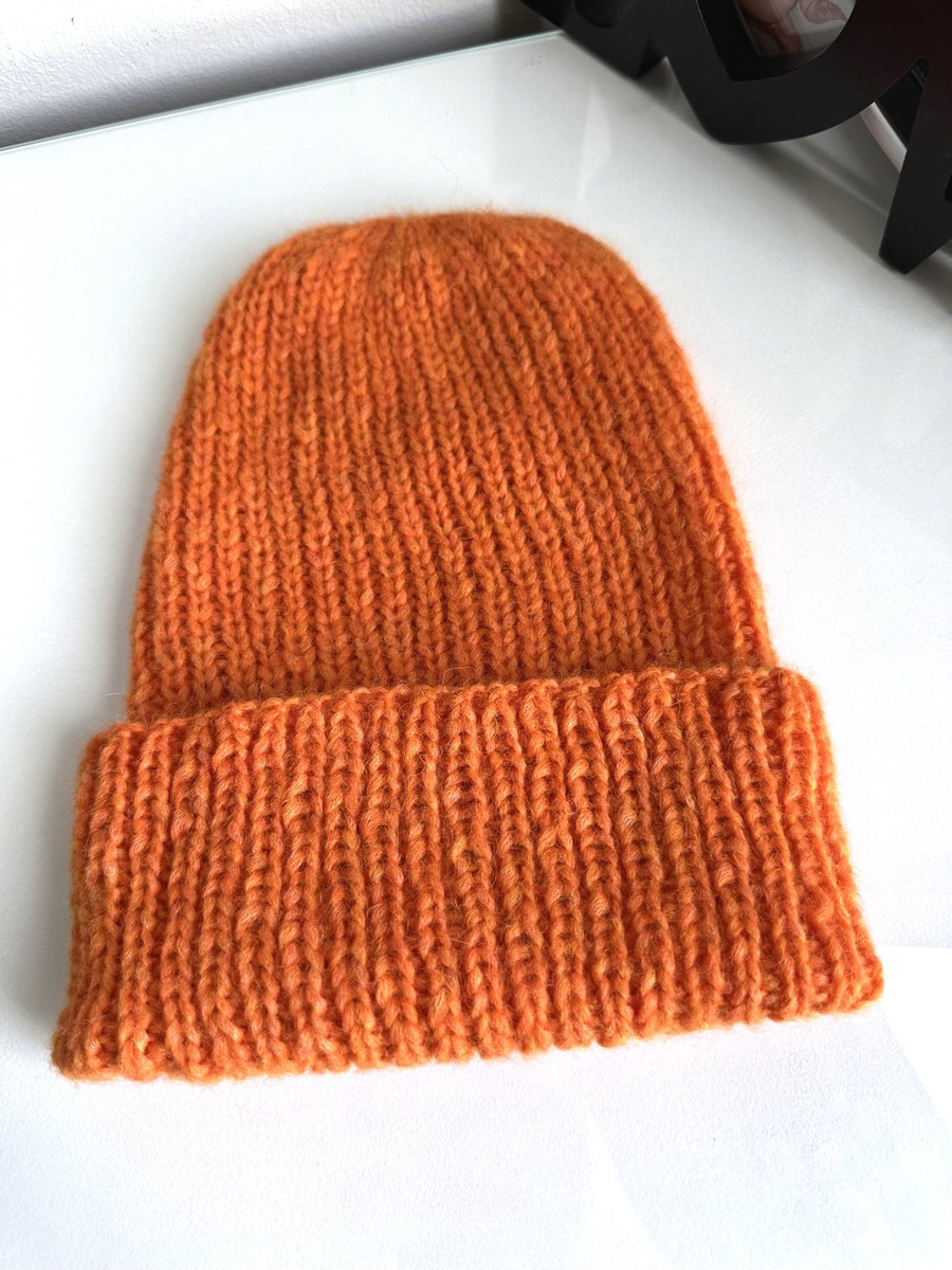 Ciepła czapka ręcznie robiona wywijana CHMURKA Alpaka 38 Elektryzujący Pomarańcz