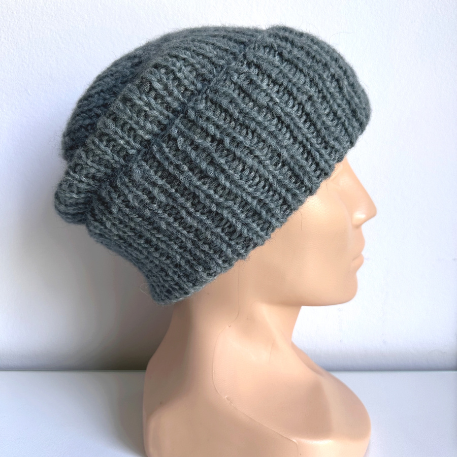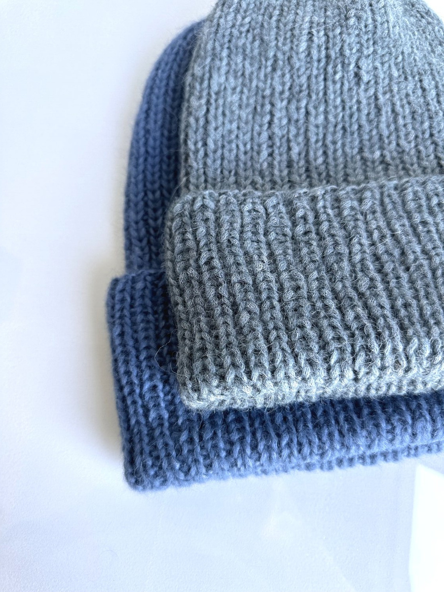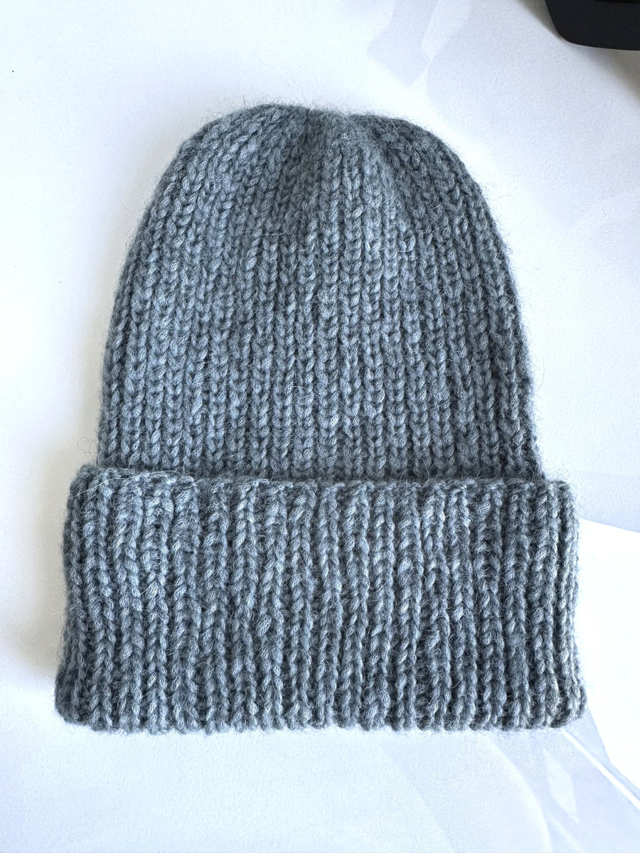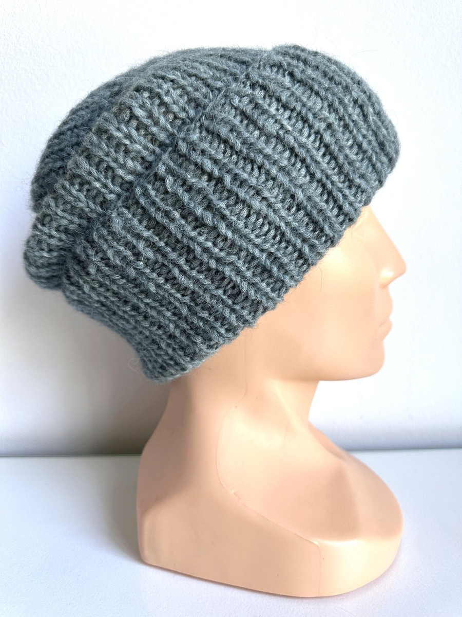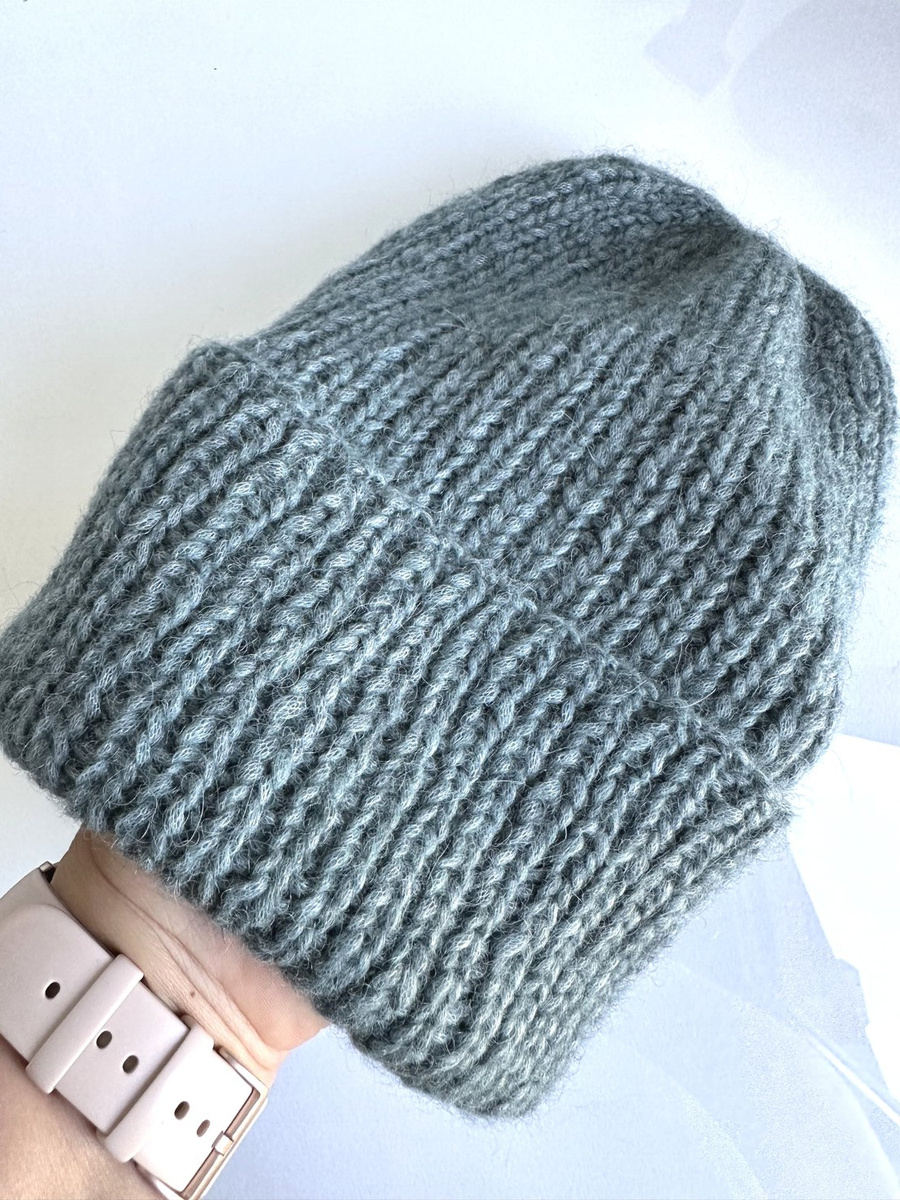 Ciepła czapka ręcznie robiona wywijana CHMURKA Alpaka 45 Morze Północne