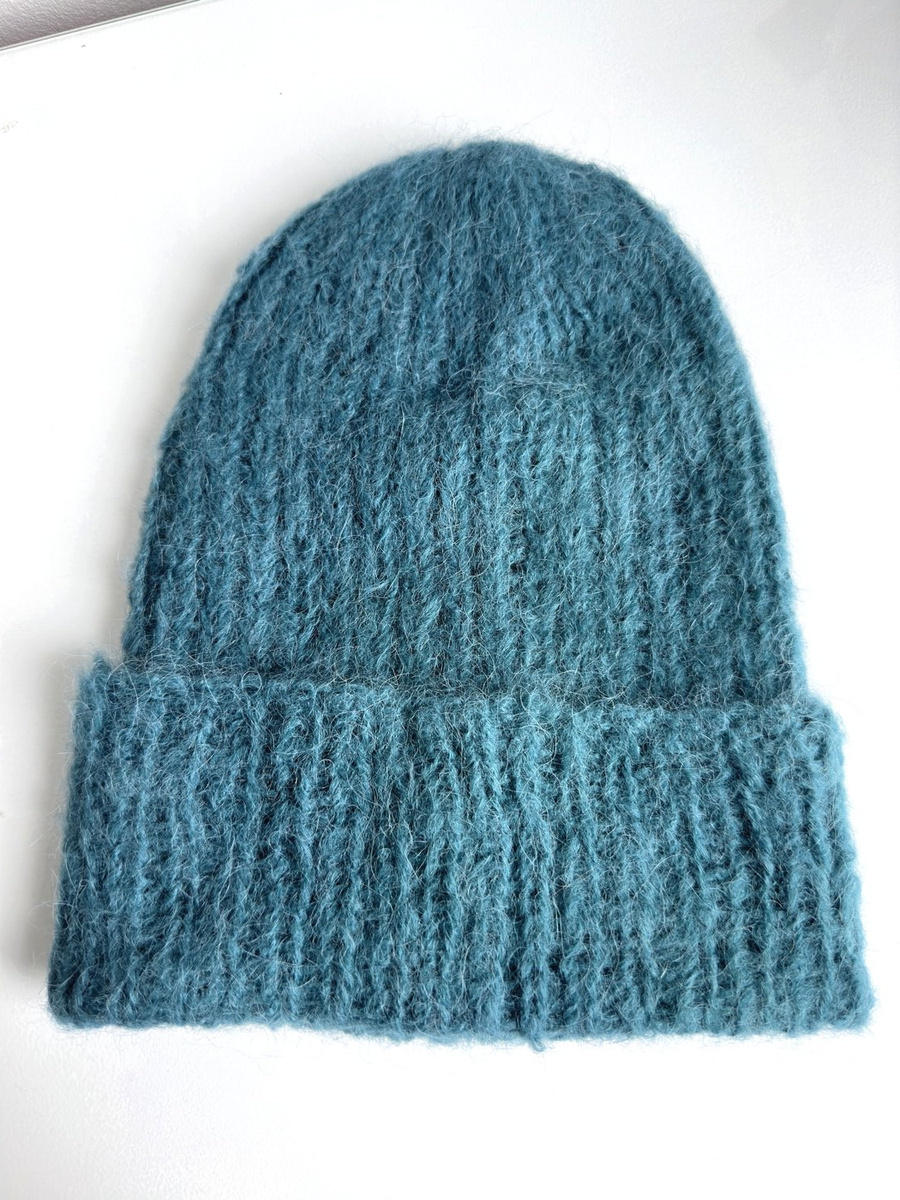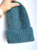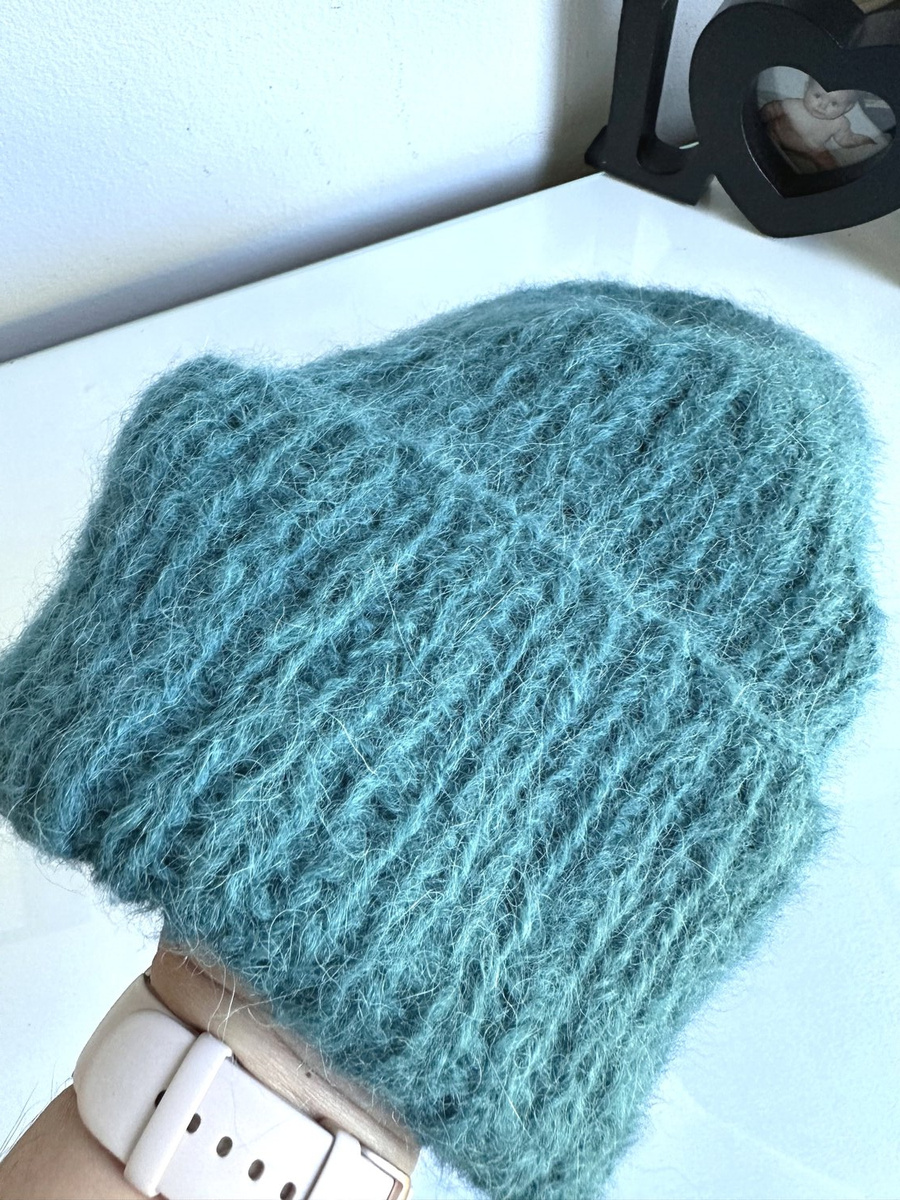 Ręcznie robiona czapka damska WATA CUKROWA Alpaka z Merynosem 8 Petrol