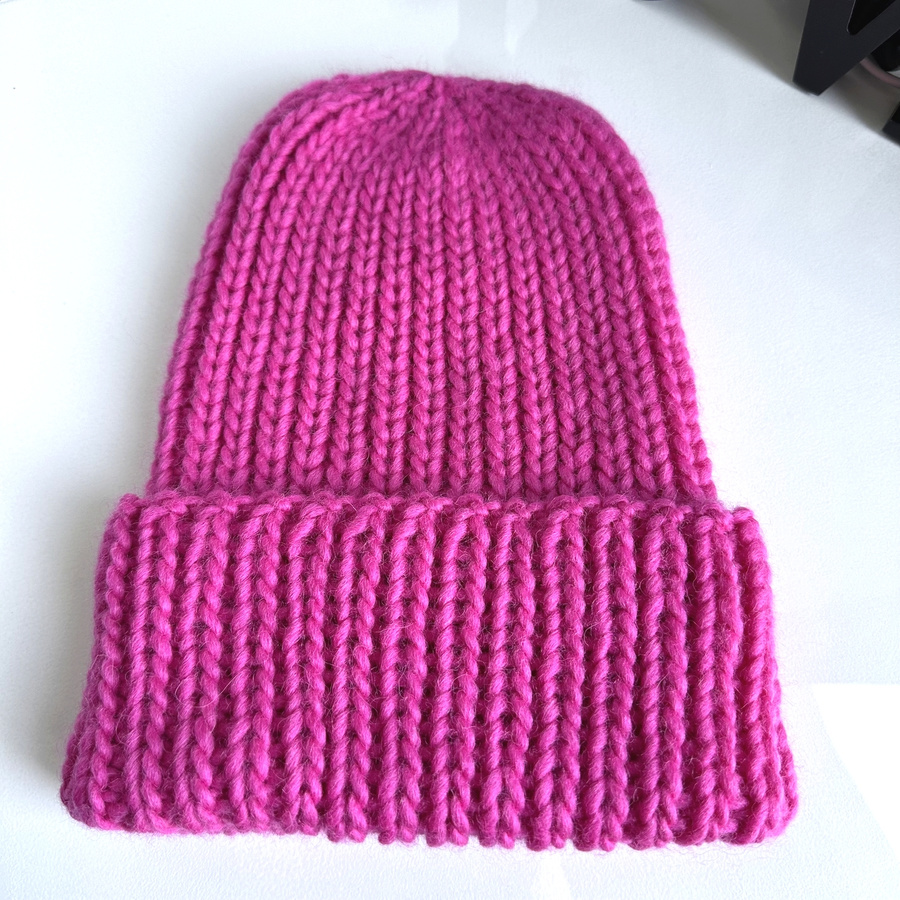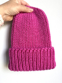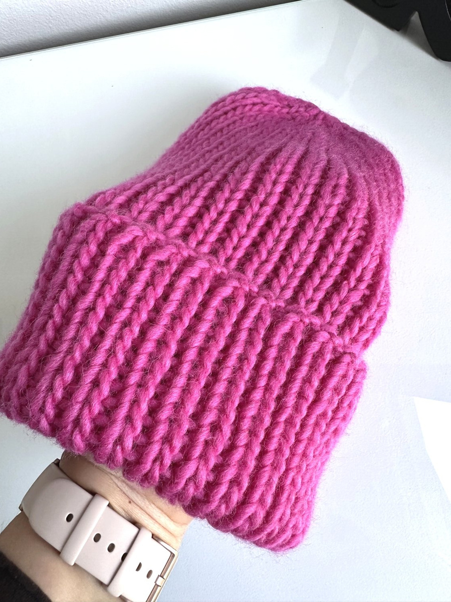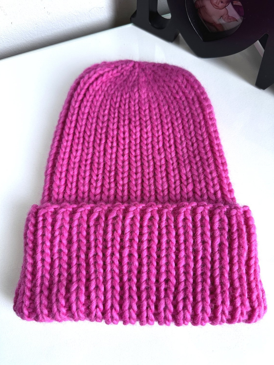Ręcznie robiona czapka wywijana JANKA 100% Wełna owcza 105 Magenta