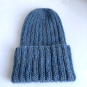 Ręcznie robiona Czapka wywijana MARGARET 100% Alpaka + nitka moher i jedwab 6309/27 Średni Niebieski Petrol