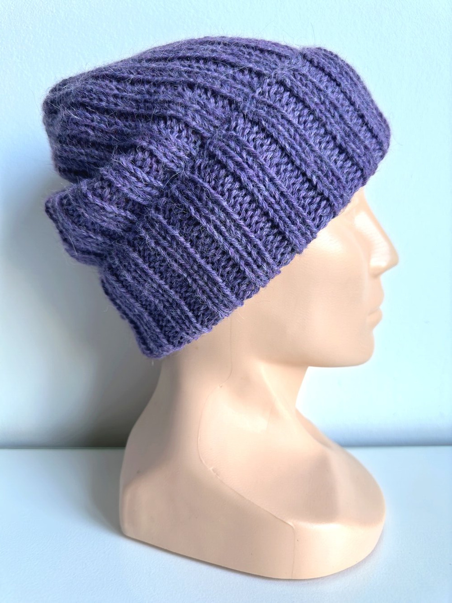 Ręcznie robiona Czapka wywijana LAURIN 100% Alpaka 4434 Ametyst