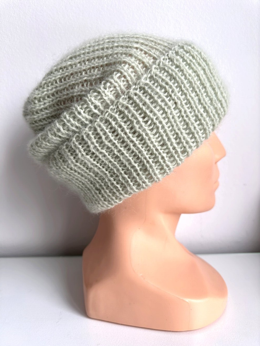 Ręcznie robiona Czapka wywijana MARGARET 100% Alpaka + nitka moher i jedwab 9030/47 Lody Pistacjowe