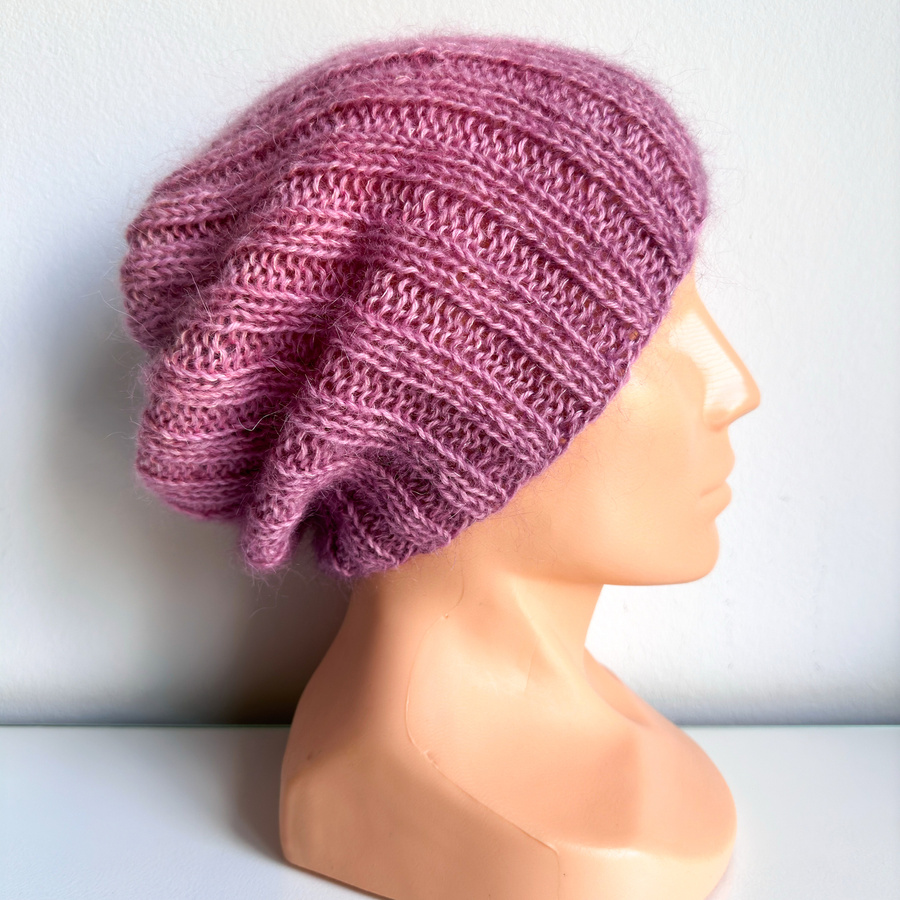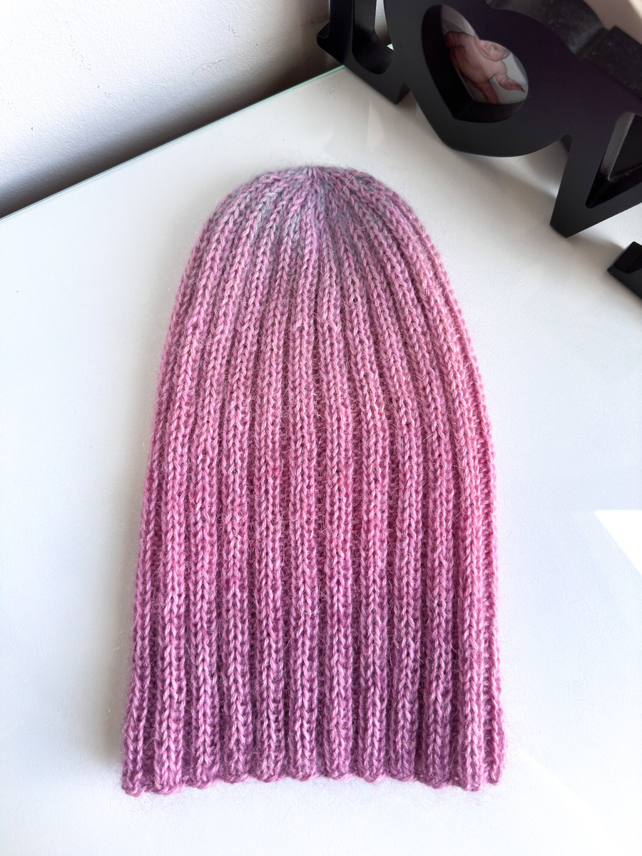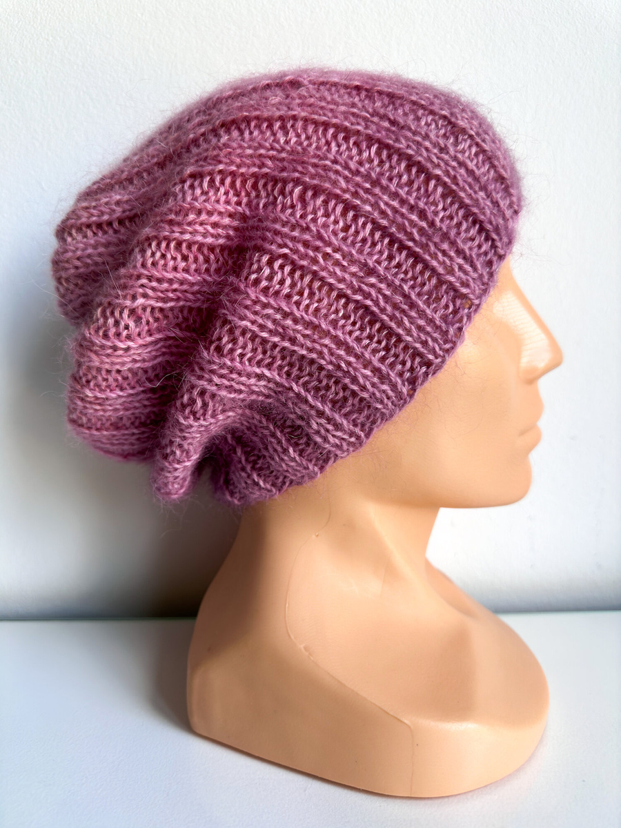Ręcznie robiona Czapka MARGARET LE 100% Alpaka plus nitka moher z jedwabiem Różowa
