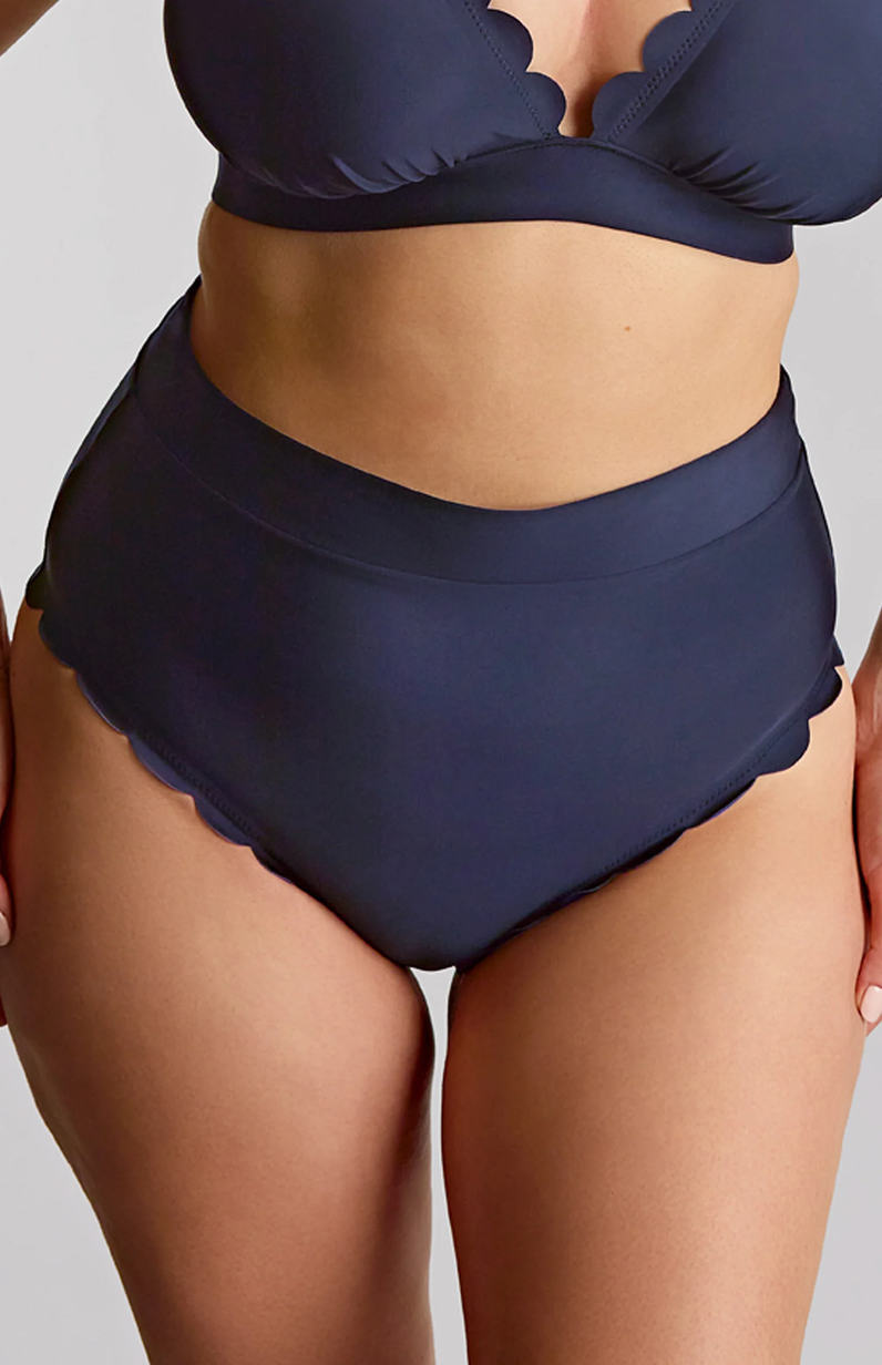 Wysokie figi kąpielowe Panache Swim SIGNATURE SCALLOP SW1755A High Waist Bikini Bottoms Signature Ink Blue
