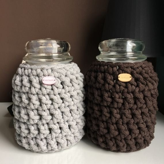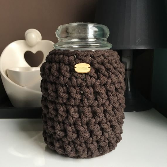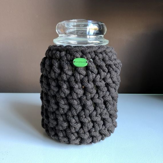 Osłonka na świecę zapachową ze sznurka bawełnianego wykonana na szydełku. Poza tym, że wygląda pięknie i stylowo, ułatwia rozgrzanie świecy do ścianek.