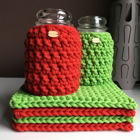 Ręcznie robiony Sweterek na świecę ze sznurka bawełnianego 128 limonka