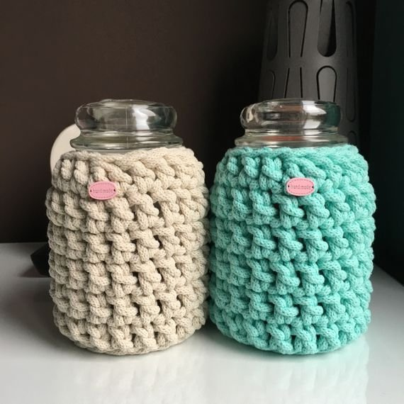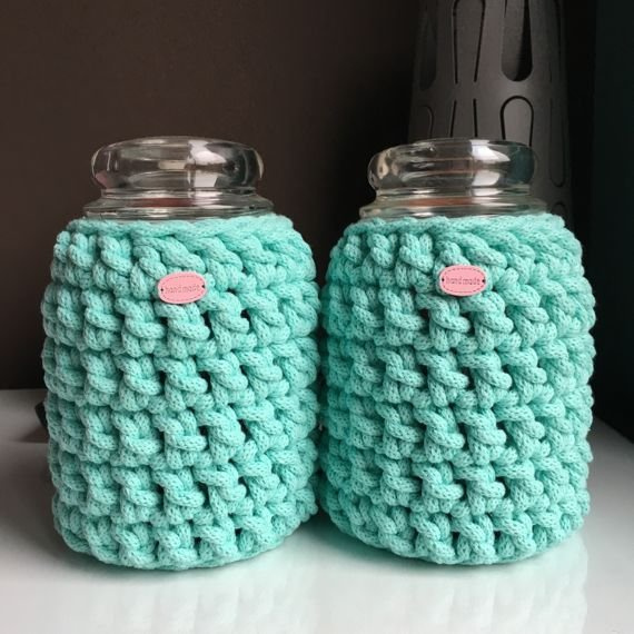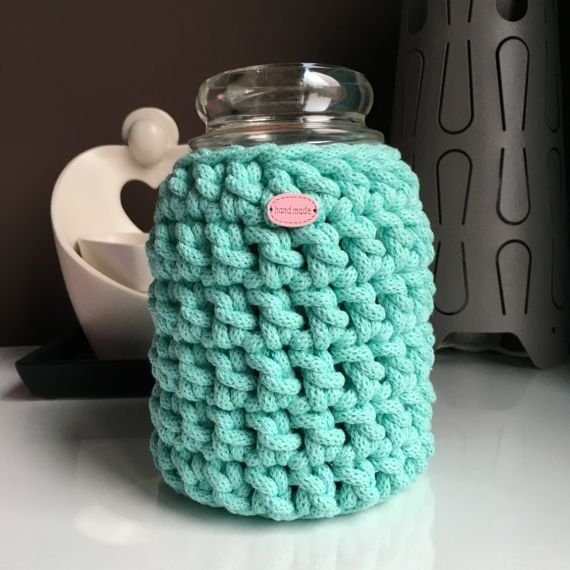 Ręcznie robiony Sweterek na świecę ze sznurka bawełnianego 600 miętowy