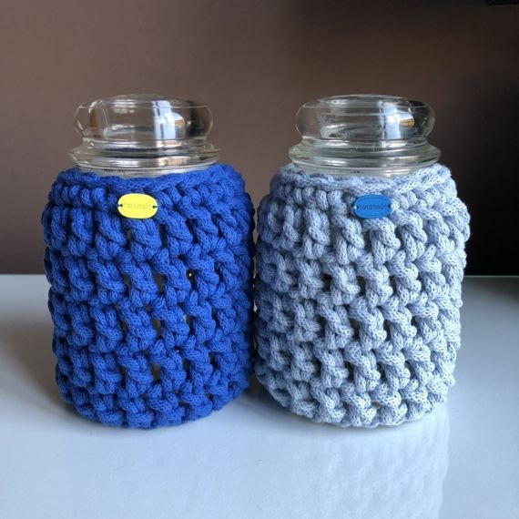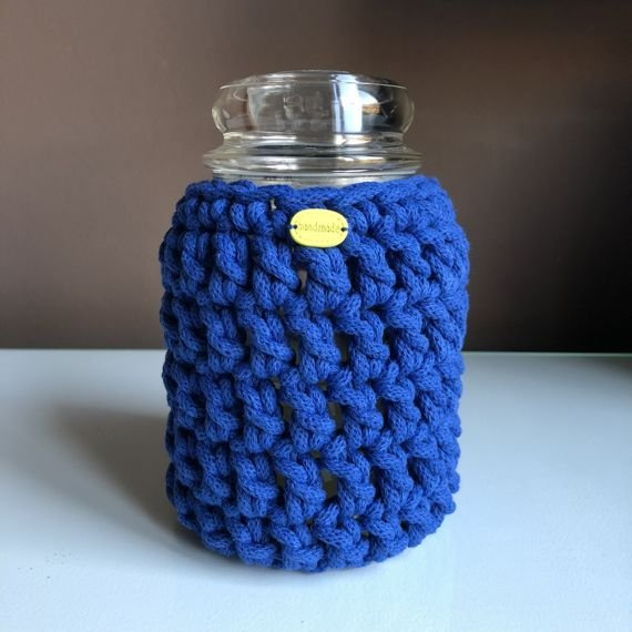 Ręcznie robiony Sweterek na świecę ze sznurka bawełnianego 490 niebieski