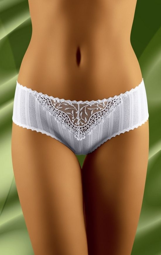 Szorty z mięciutkiej tkaniny w prążki, z przodu wstawka z haftowanego tiulu. Nosząc ją kobieta czuje się wyjątkowo miło i komfortowo.