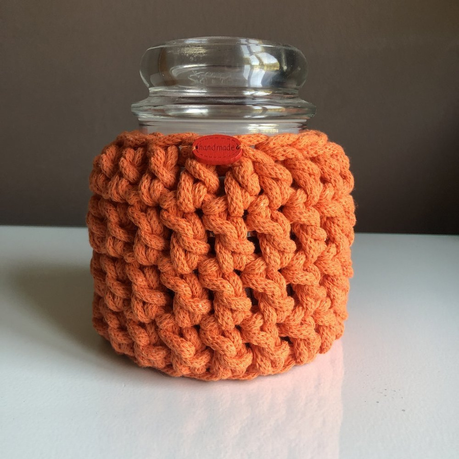 - Ręcznie robiony Sweterek na świecę średnią ze sznurka bawełnianego pomarańczowy
