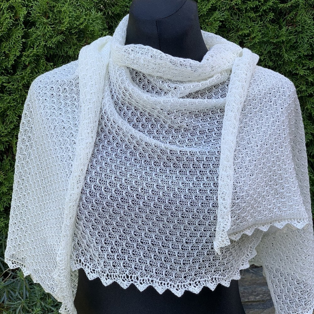 Szal wykonałam na ręcznej maszynie dziewiarskie z troską i dbałością o każdy szczegół ♥ Cały szal wykończyłam szydełkową koronką. Jest piękny i niepowtarzalny.